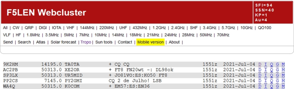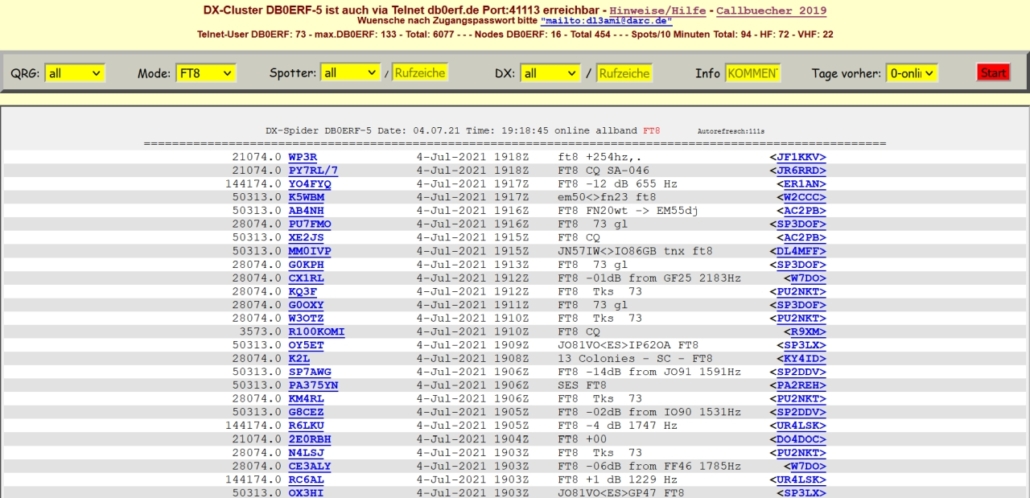 – welcher Funkamateur | zu welcher Zeit | welches Funkrufzeichen | auf welcher Frequenz – (QRV – betriebsbereit) ist | bzw. gehört hat.