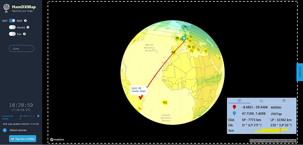 Propagation = ( Beispiel – Anzeige ) ⇒ SFI = 180 A = 7 K = 3 | ⇒ Hilfe | »» Funkwetter [ Telegramm ]